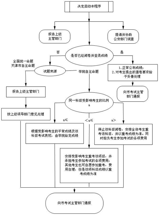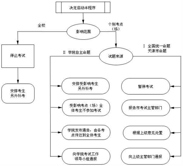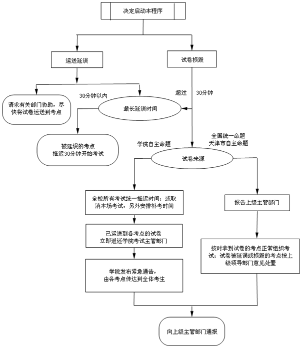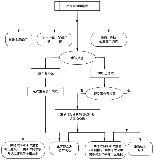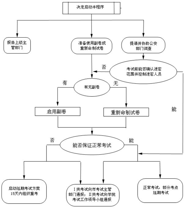 在考试前丢失试卷,或确认试题泄密时,启动如下工作程序。