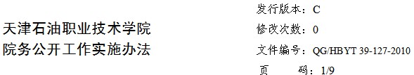 本办法规定了天津石油职业技术学院院务公开工作的职责划分、基本原则、工作要求、内容、形式和程序。
